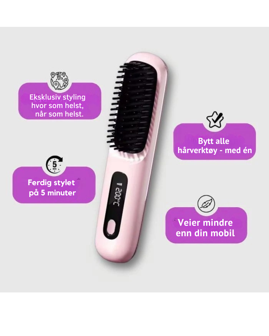 Vil du ha enkelt og perfekt hår hver dag? Den magiske hårbørsten fikser alt – raskt, enkelt og proft resultat på minutter. Bytt ut alle hårverktøy med én lett og kompakt børste som du kan ta med overalt. Perfekt for deg som vil ha glansfullt, glatt hår uten stress eller rot!